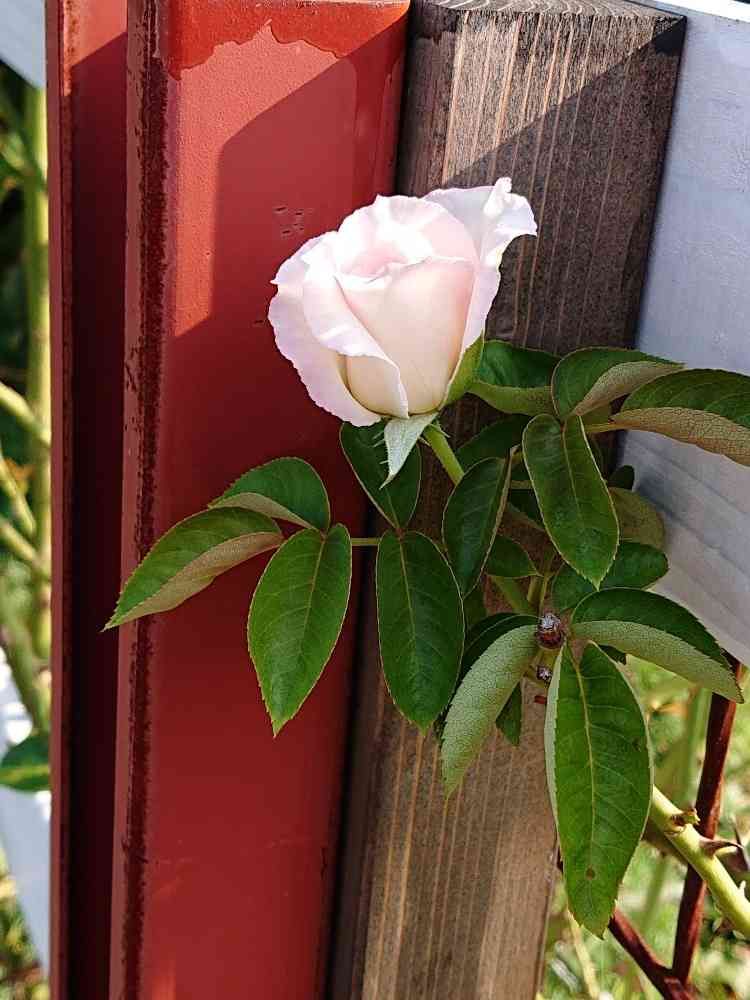 🌹暑い中ツル姫(ツル・プリンセスドゥモナコ)が一輪咲き始めました。