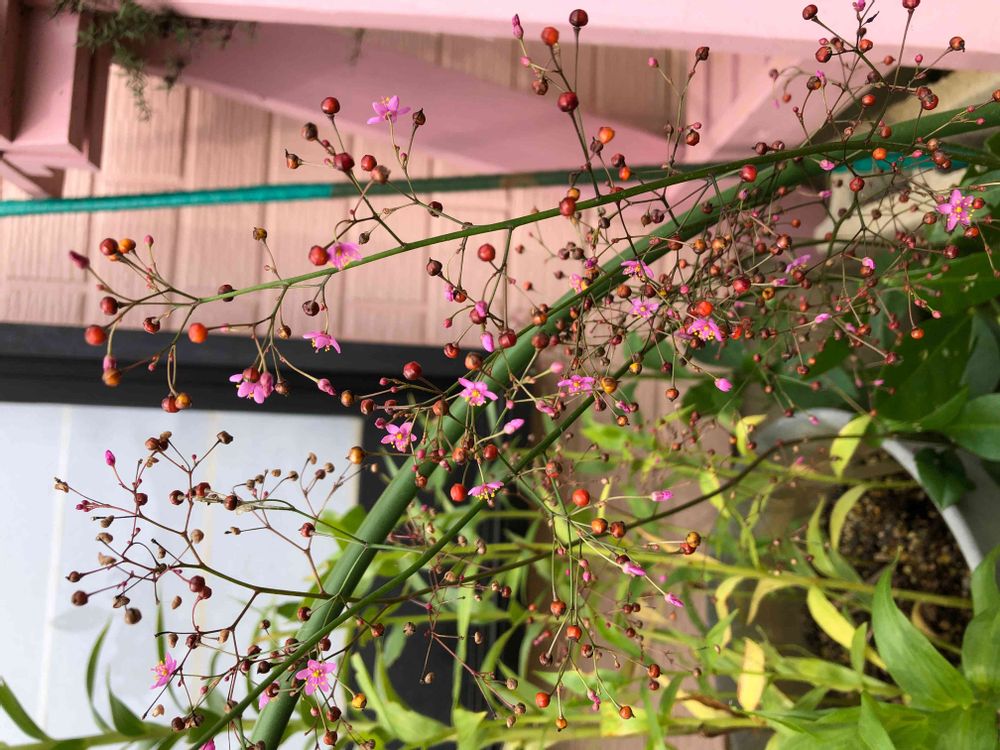 有難うございました。後で性質を調べてみます。自然に生えて大きくなってしまいました。一つひとつの花は可愛いのですが、庭には?