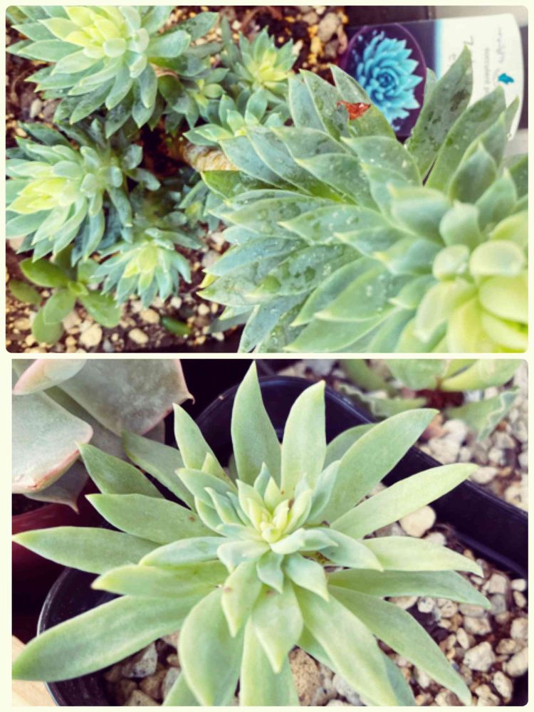 上が親株で下が切って刺したもの‼️ 同じものと思えないくらい、色が違う😅