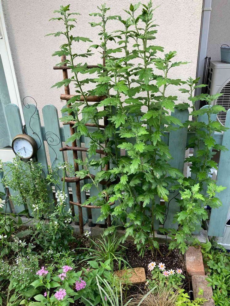 葉っぱの4枚目のあたりで摘み取る摘芯を3回ほど。