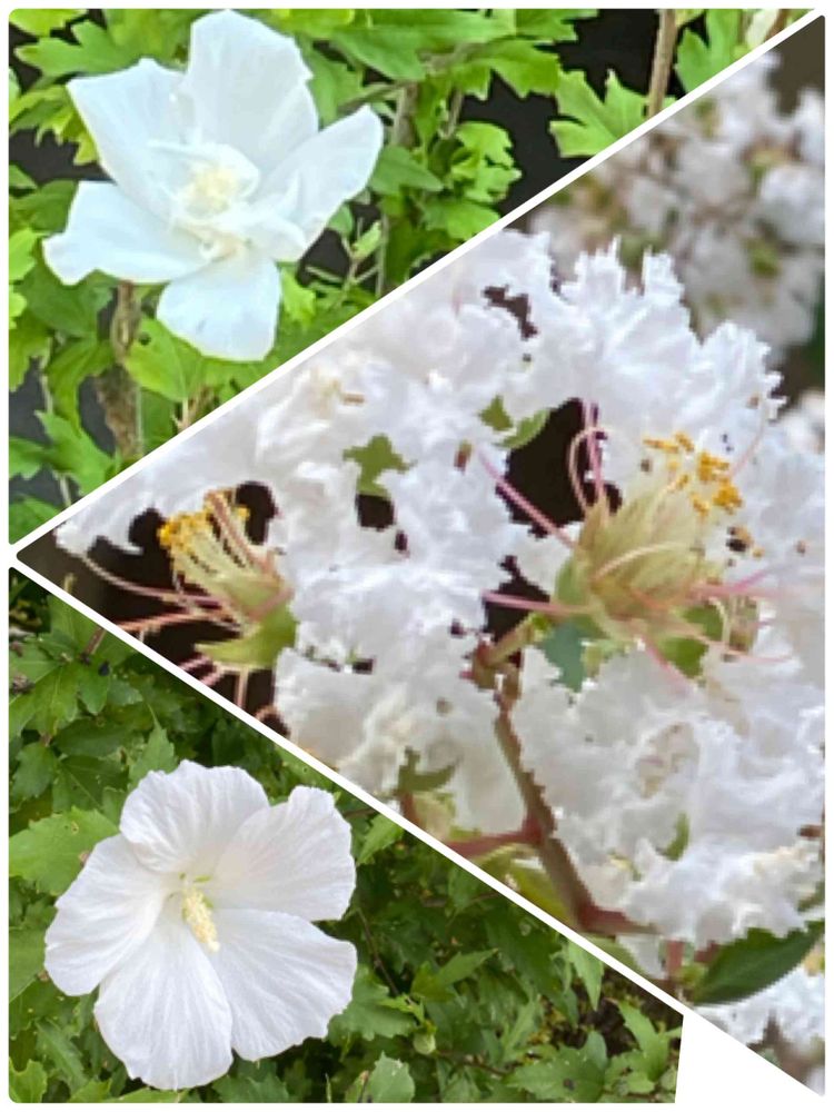 サルスベリ、芙蓉かムクゲ?一番上は何かなぁ〜⁇