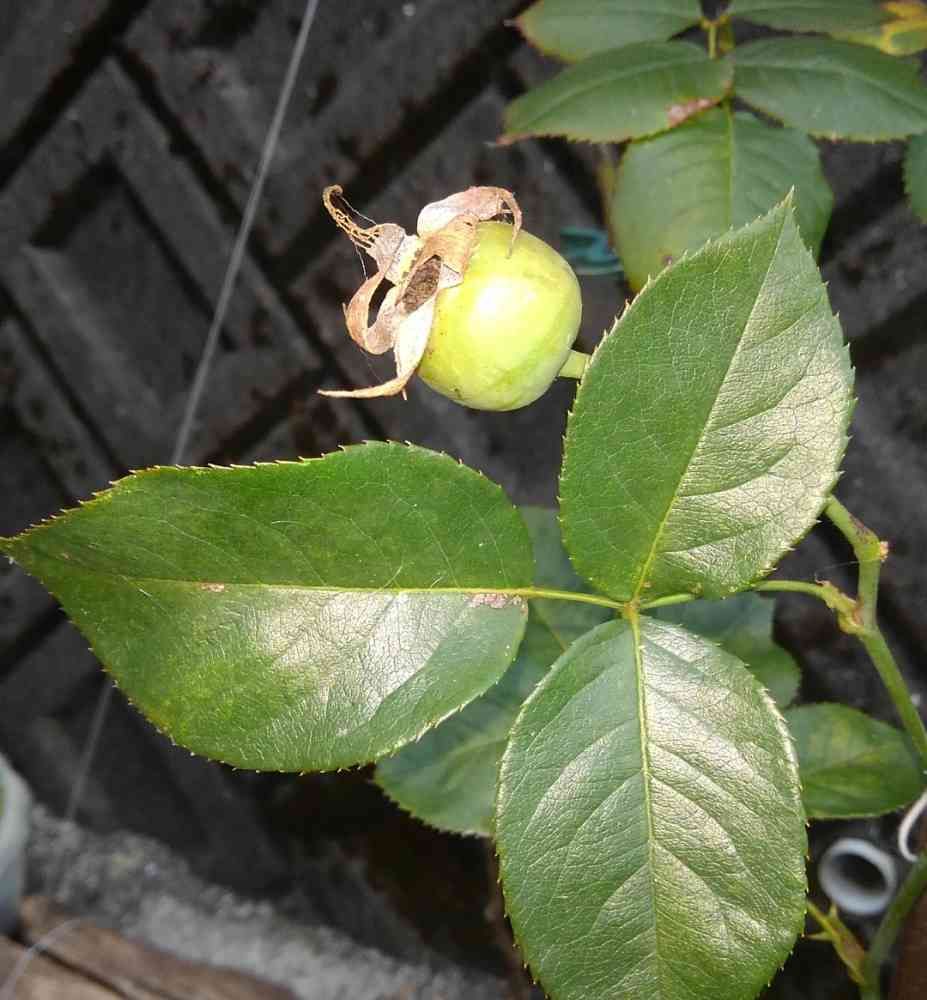 薔薇の花が咲き終わり、花びらが散った後、こんな状態に……😅これは、薔薇の実(❓)なんでしょうか❓