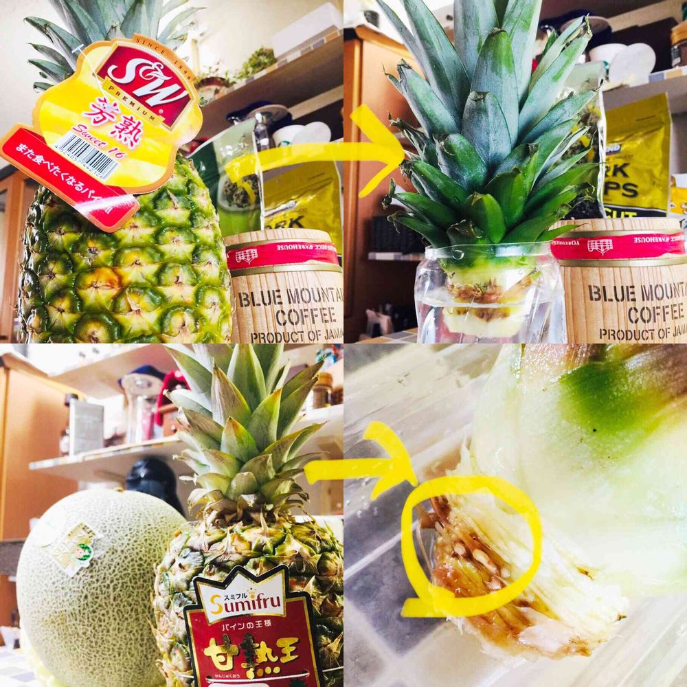 パイナップルのヘタ植えてみる♪
