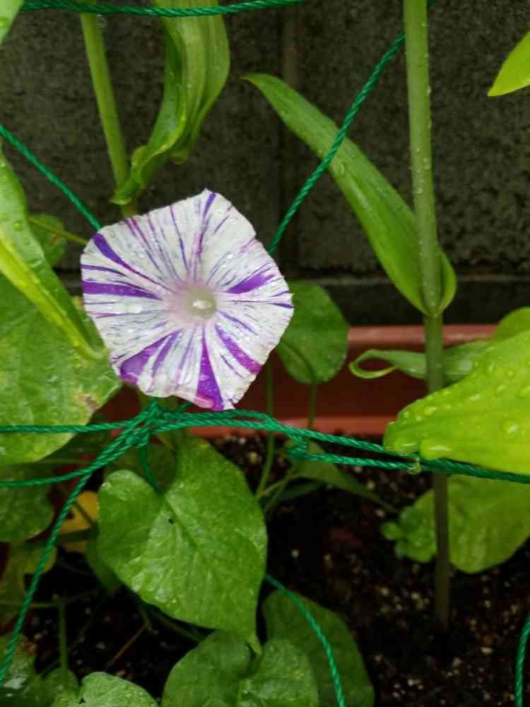☝ ピンクの八重咲きの朝顔に続いてチロッと咲きだしました。