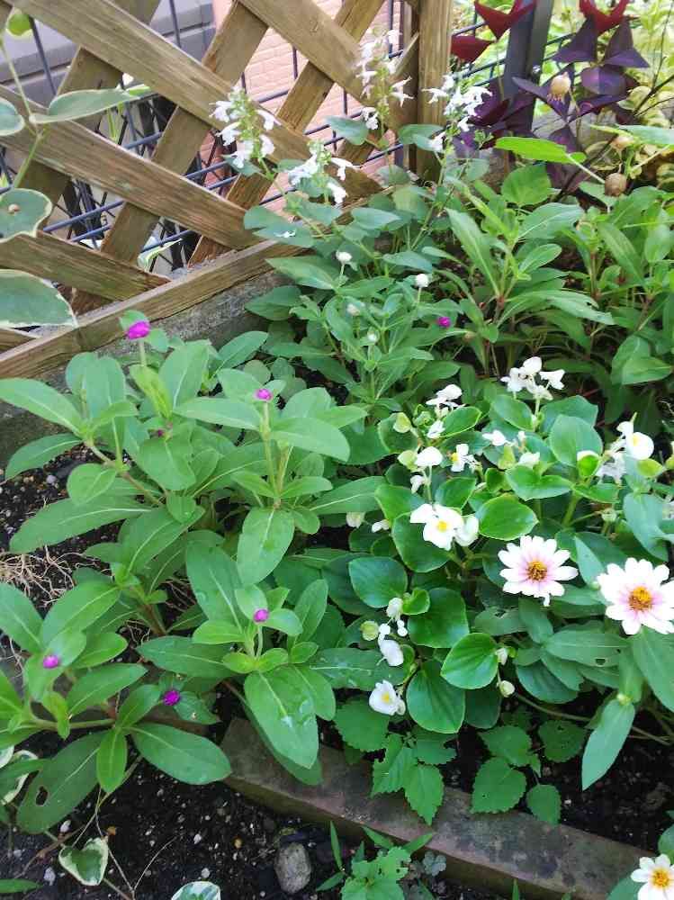 種からの白のサルビアとミックスの千日紅(背が低いタイプ)がやっと咲いてきました(^w^)