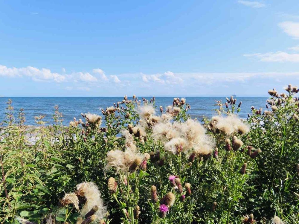 今日の東スコットランドは気温が21度まで上がり風が程よく吹いてお散歩日和でした💛フォース湾沿いの海岸に自生するアザミは綿毛に変わってきてます~😄😀どうかもう少し夏が続きますように。。