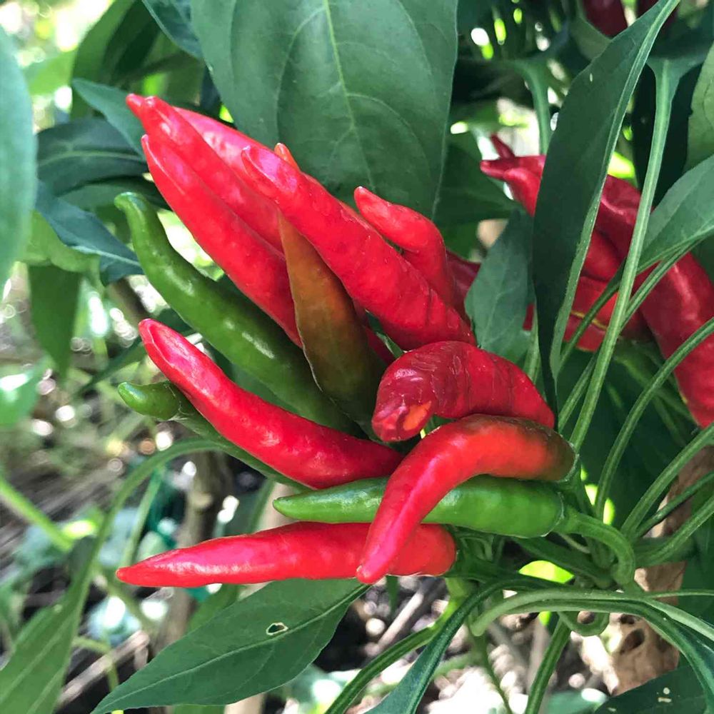 緑の中で唐辛子🌶の赤色はとても映えていていいよね❣️最近までうちの庭にもありました。