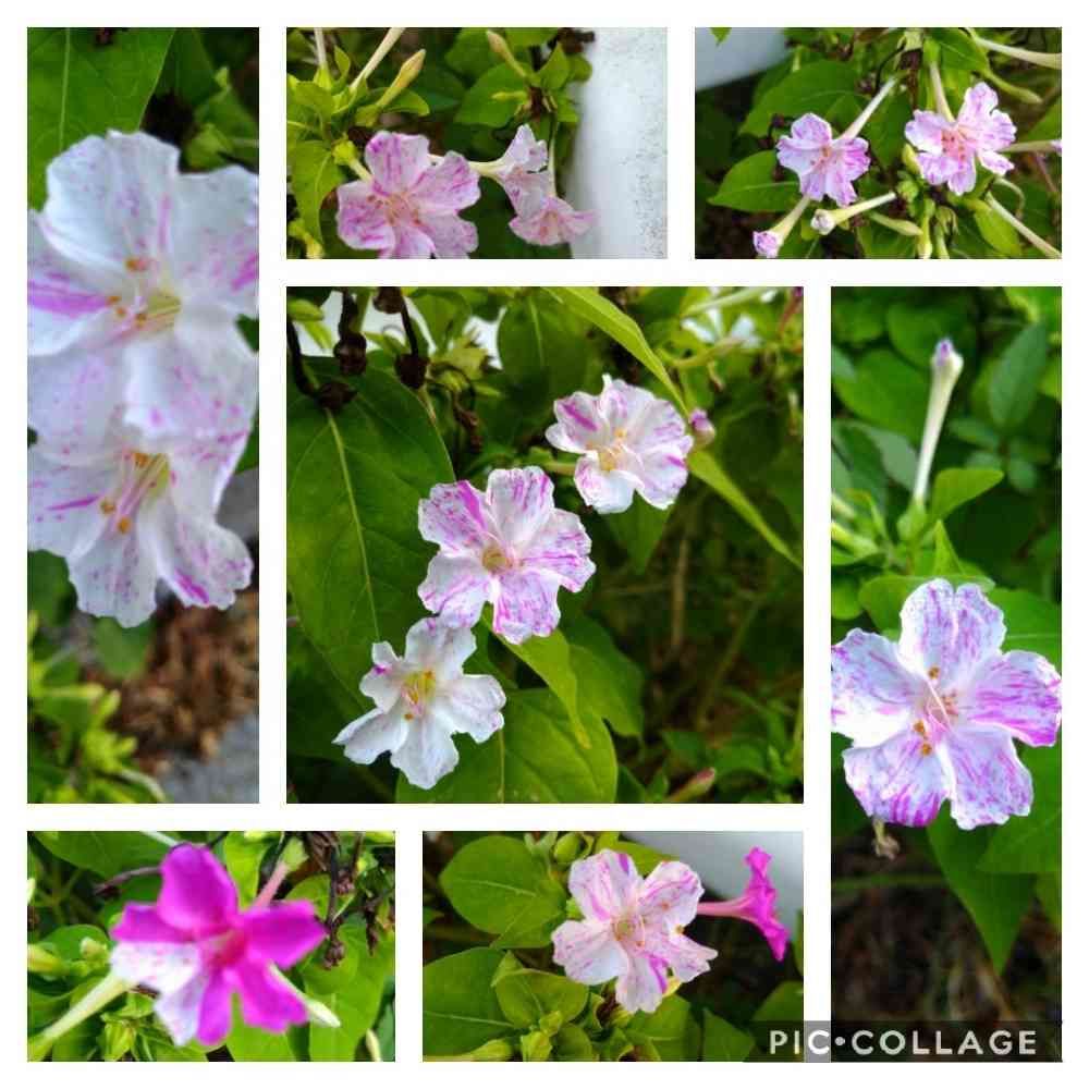 オシロイバナ、ピンクの絞りが可愛いです🥰 もう終わりに近いのか、花が小さいですね☺️💖