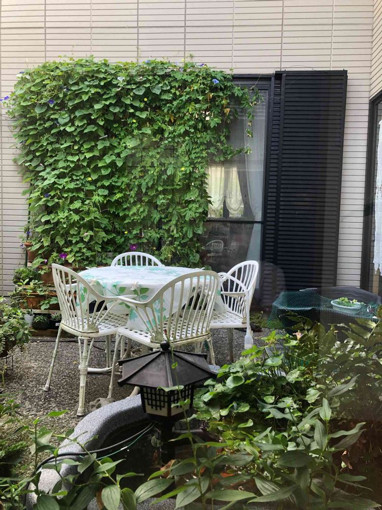 朝顔は元気ですが室内からは繁り過ぎて枯れて来てる葉っぱ☘もあります。
