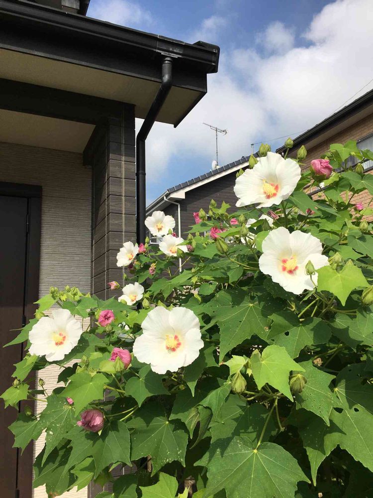 おはようございます😊朝一の酔芙蓉さんです✨白が夏空に映えます✨