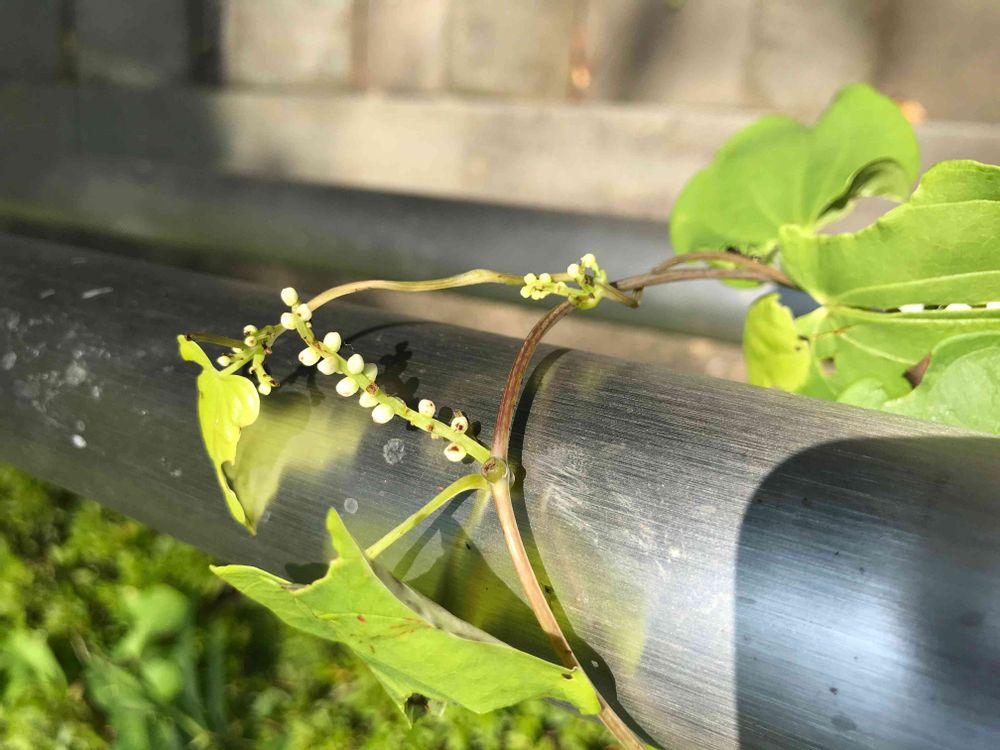 山芋は何処にでも巻き付くので、知らない間に花にも、植木にもって、少々厄介なヤツですが、ムカゴはなんとなくかわいいと思います💖