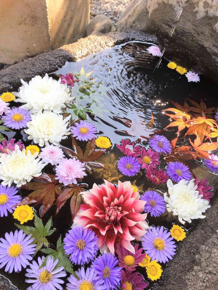 すでに秋の装いの花手水🍁