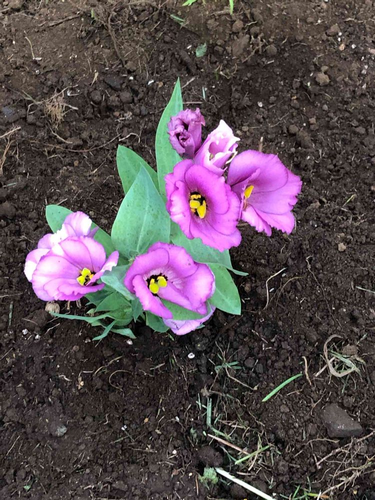 土に植えてある、トルコキキョウ初めて見ました💜