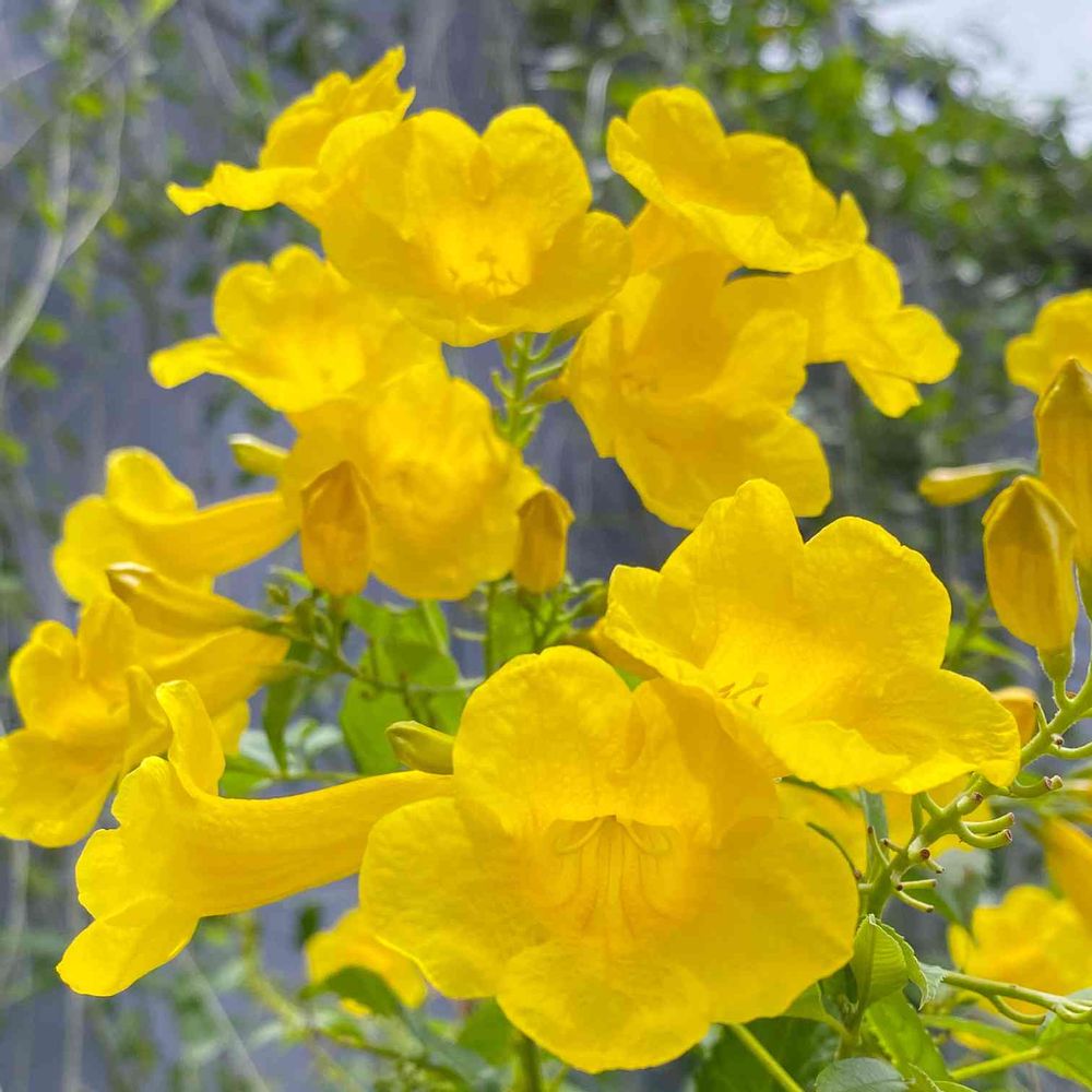 テコマ•スタンス。和名ではキンレイジュ(金鈴樹)、英名はイエローベル🔔。ノウゼンカズラ科の植物です。