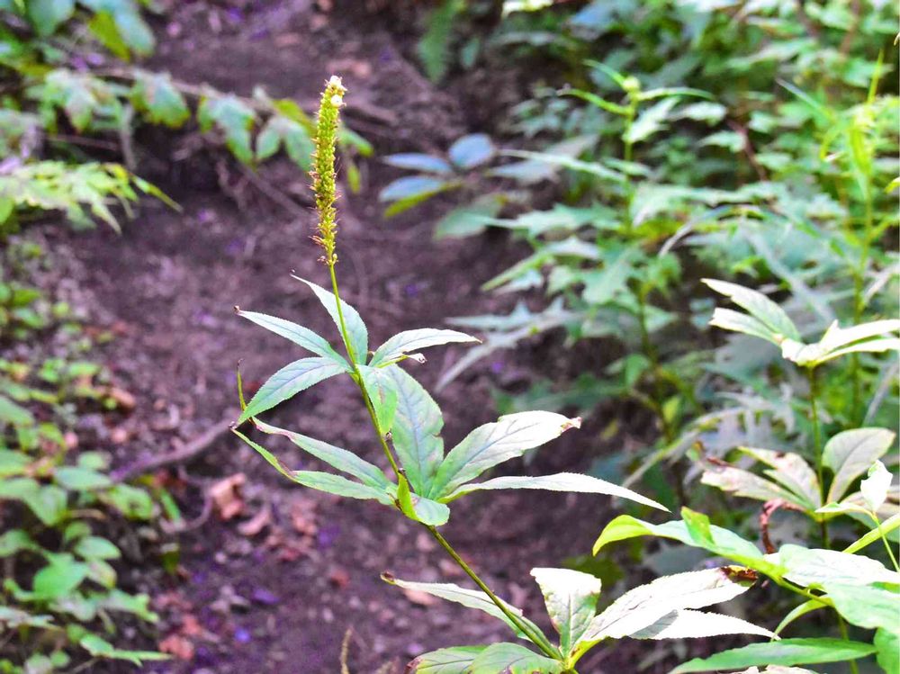 クガイソウですね、綺麗な紫の花穂を真っ直ぐに立ち上げるのですが、これもまだツボミ。