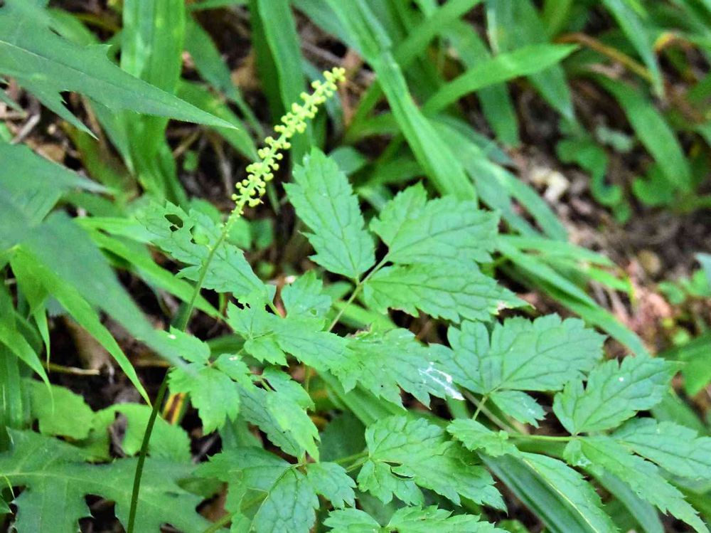 真っ白な太いブラシのような花穂をつけるサラシナショウマですが、やっと穂をつけ始めたばっかりでした😓