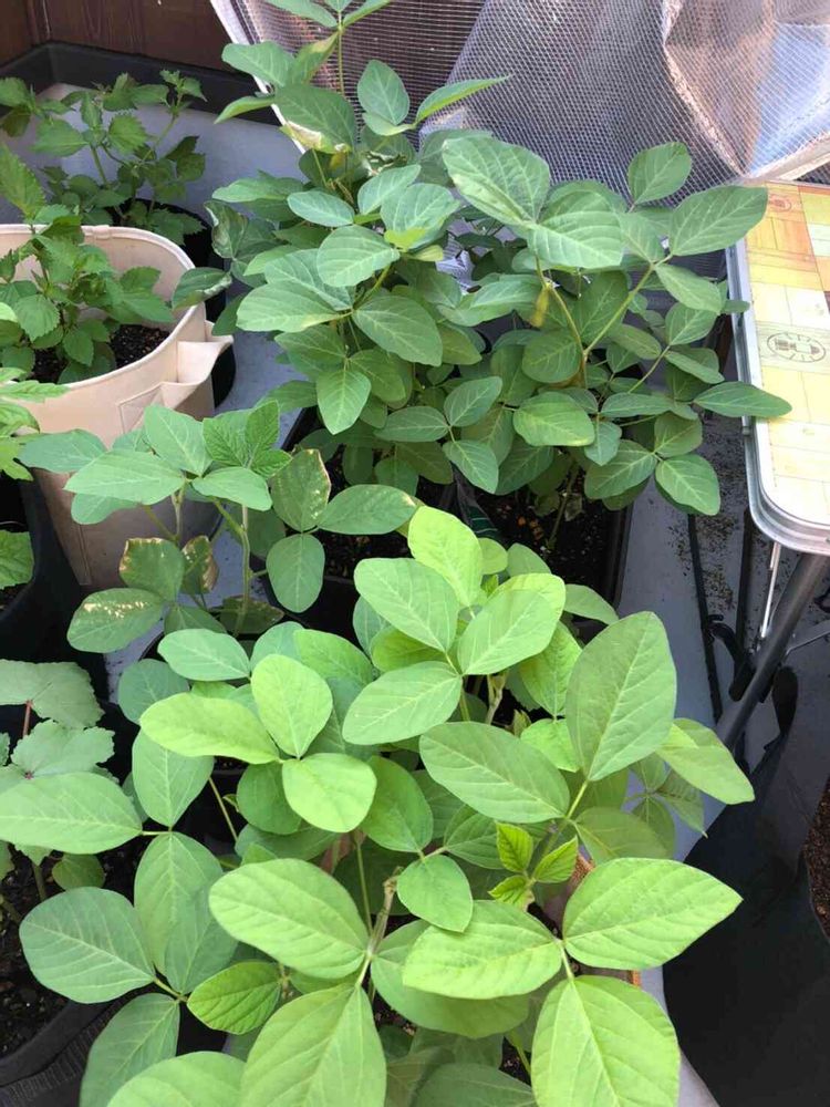 奥が6月に撒いた枝豆。もうすぐ収穫できるかもしれない。楽しみ😋そして、このアプリ楽しい。野菜を育てるのも楽しいけど、さらに楽しみが増えました🥰