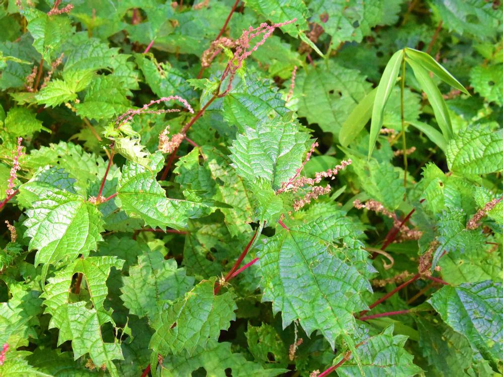 アカソが山の斜面や道路脇を覆っています。イラクサ科のカラムシ属で、主に三種、アカソ、コアカソ、クサコアカソとあるのですが…