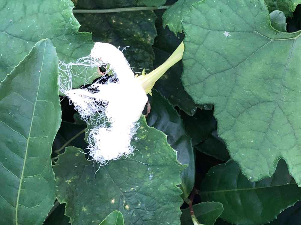 白い花のつたの花。糸が花を覆っている様子が珍しいので名前がしりたくなりました。農業地帯に今、とても蔓延っております。