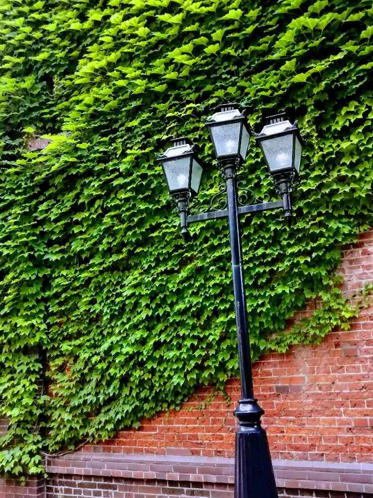 レンガの壁のもりもりの蔦の葉の緑が綺麗