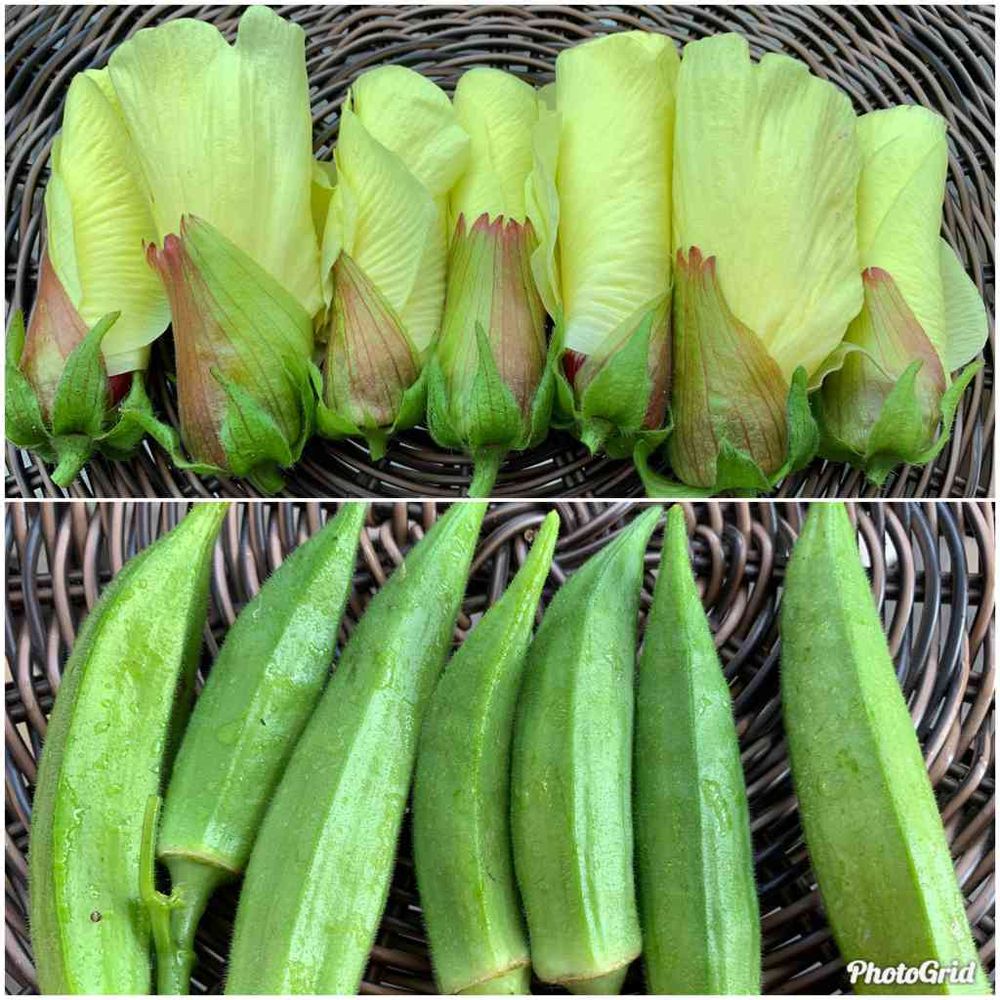 花オクラ毎日50個くらい採れてあっちこっちに配っています💦