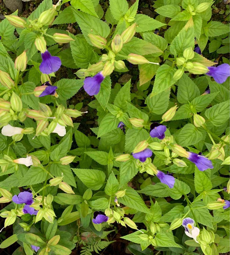 いつも通る道で咲いてます。恥ずかしいの正面見てくれません。あっ、一輪。「今日の花 トレニア」