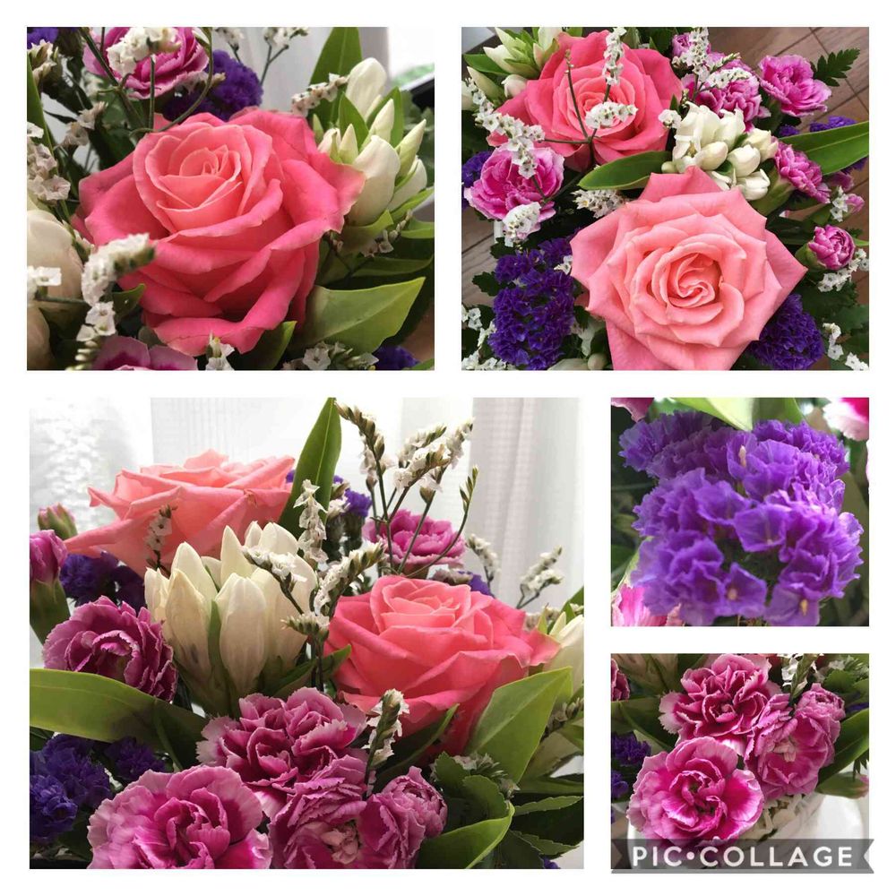 瑞々しい花束ですね💐バラの色が素敵~🌹