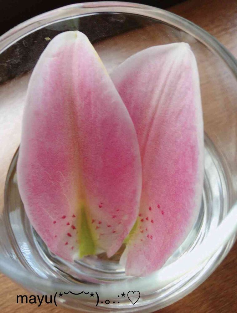 小さなアレンジの花びら2つポロッと取れてて…捨てたくないので水につけてる✨