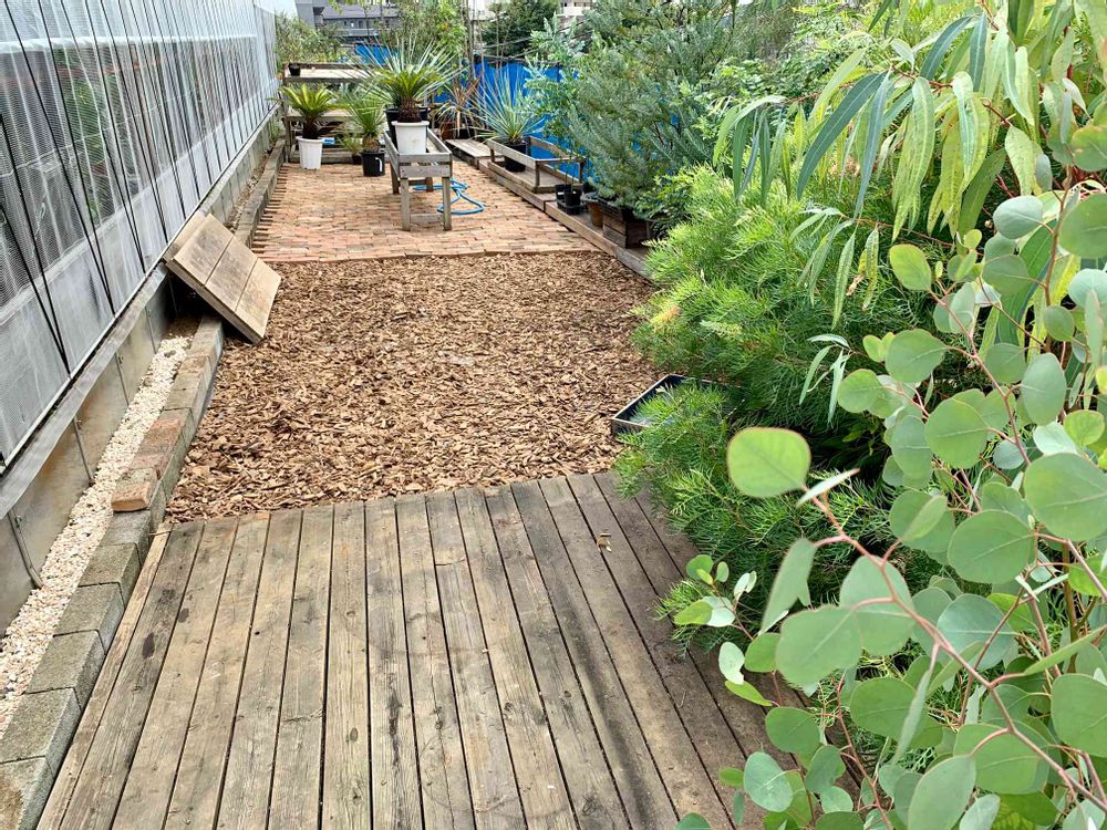 外の植物がハウス内入り口の反対側の外に少し移動しております。