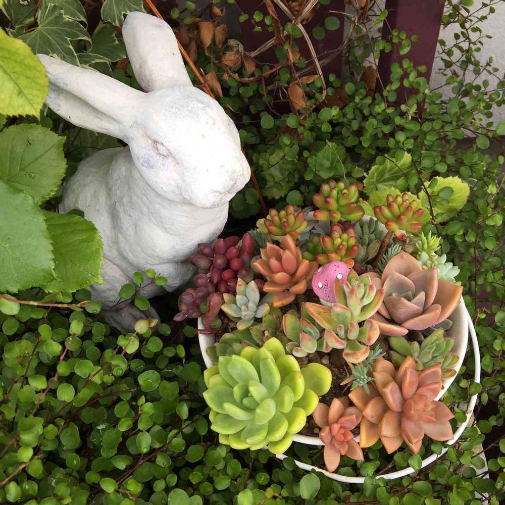 うさちゃんとワイヤープランツ、多肉寄せちゃん マッチして素敵✨❣️ うさちゃんが多肉ちゃん達を見つめてるわ〜😍