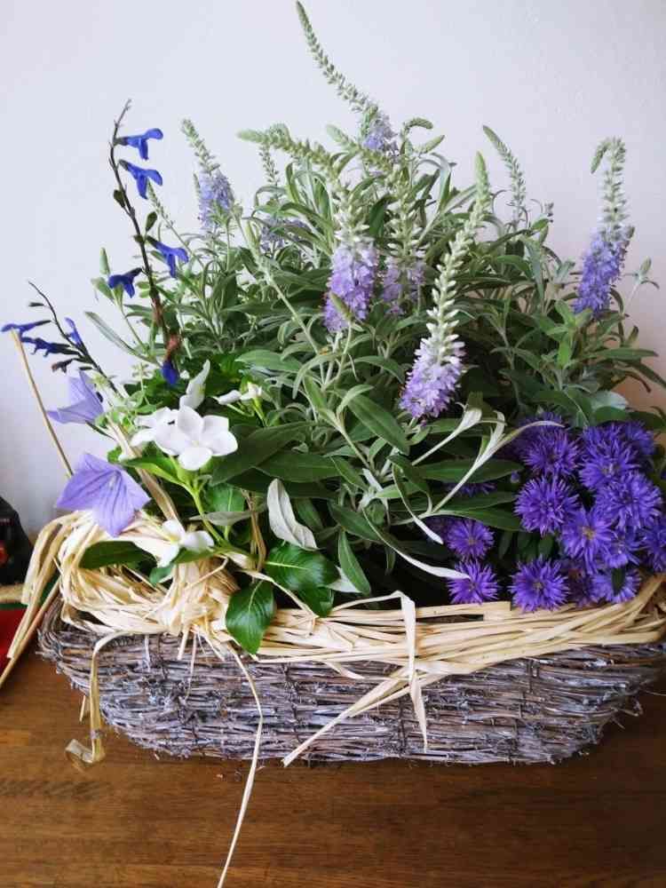 素敵な色の爽やかなブルーの寄せ植えですね。