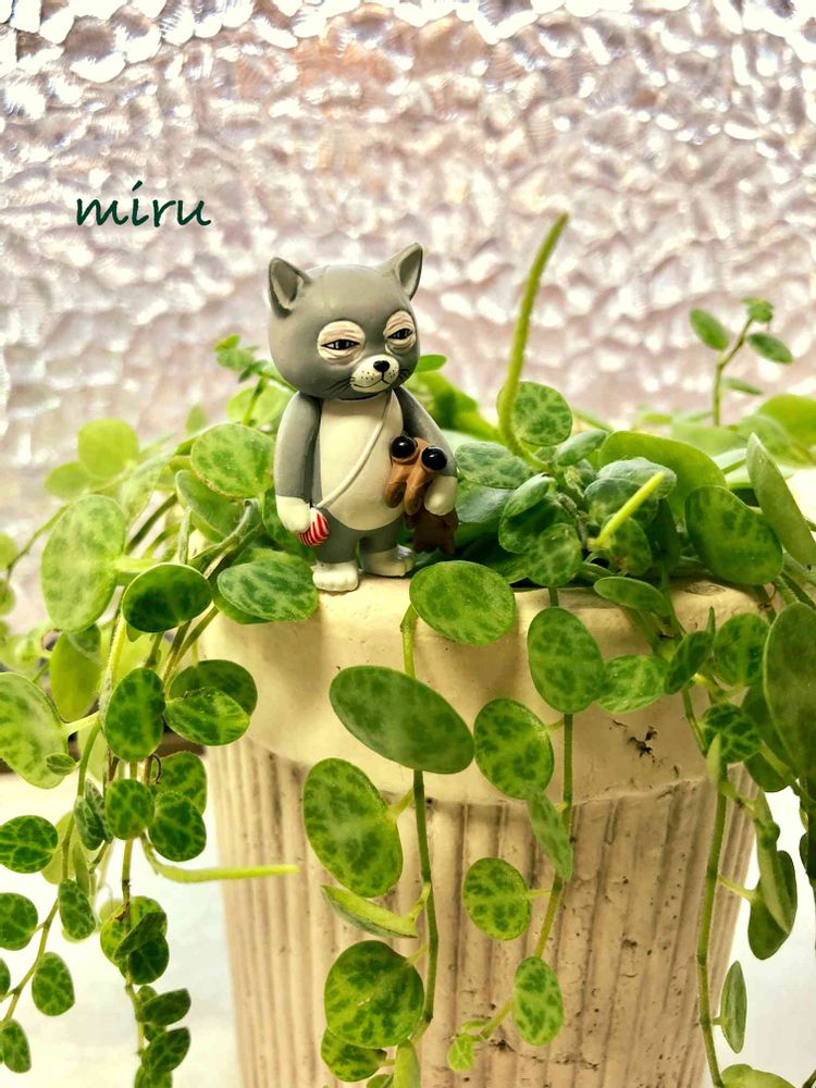 このニャンコはぬいぐるみ設定、アノマロは抱えてる子です。古代の生物なんだっで(〃▽〃)ヒグチユウコさんの世界です💓