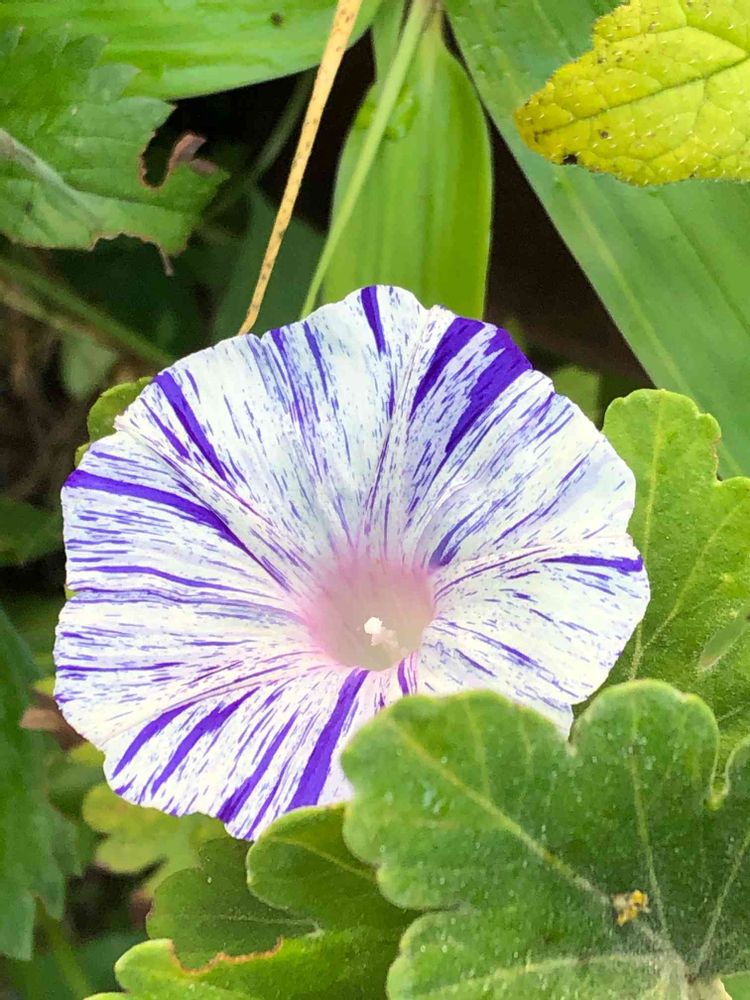 毎年咲くアサガオなのに、今年は、今頃になって見つけました。✌️ 実生で発芽しあっちこっちから出ていたので、適当に抜いていたのが、これだったのか、今まで咲いた花は、白とか、薄紫ばかりでした。😥