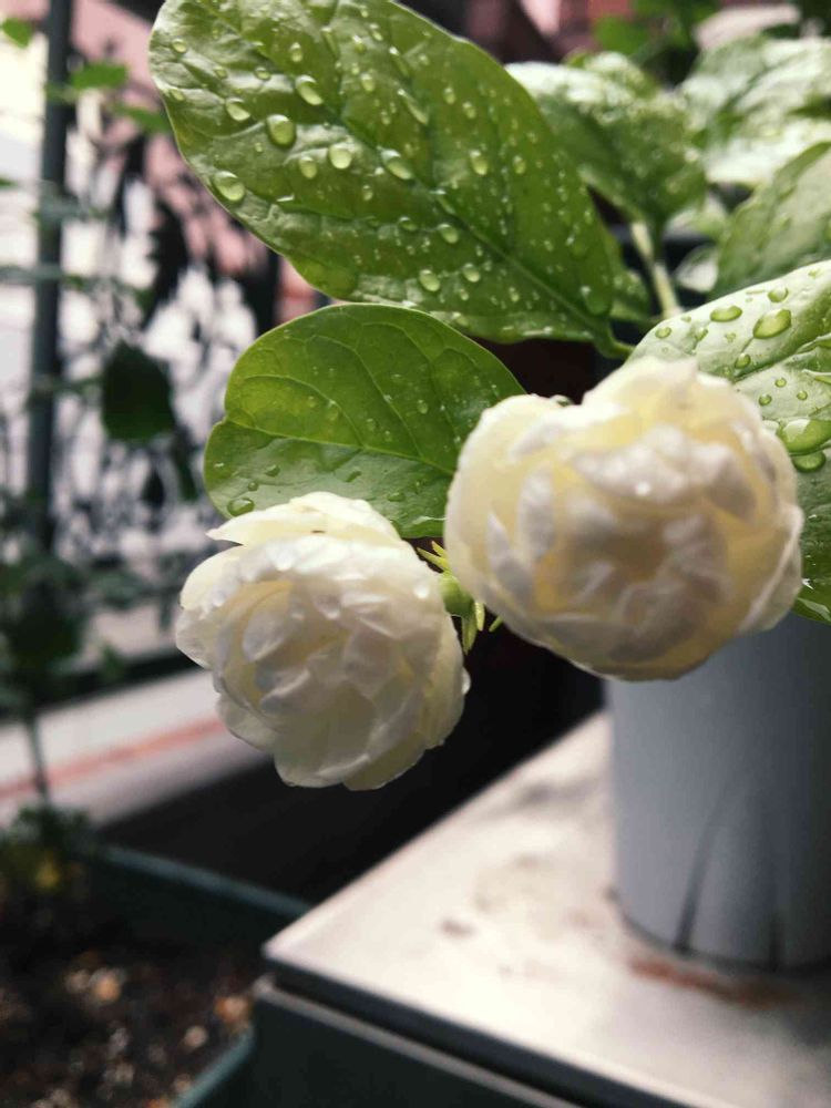 雨の中咲いた茉莉花ジャスミン♪香りが強い‼︎