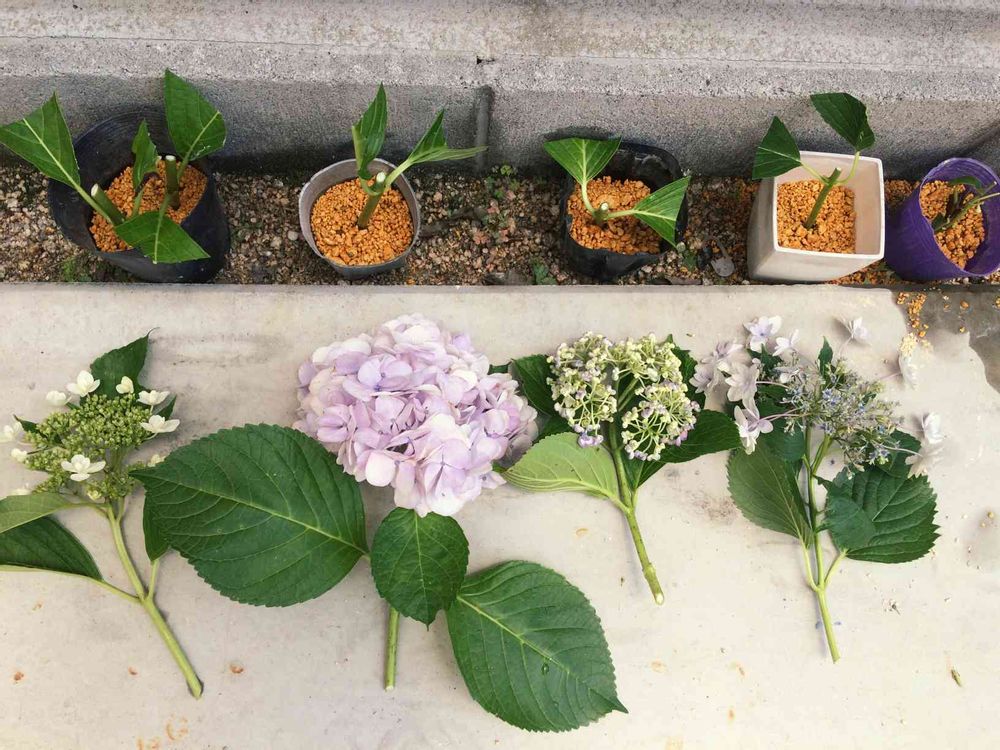 アジサイ園で摘み取りしてきた5種類のアジサイ、挿し木しました😊