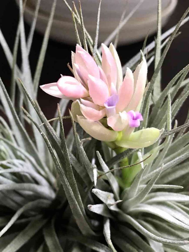 初めて買ったエアープランツ。コットンキャンディというそうです。紫色の小花が咲きました。