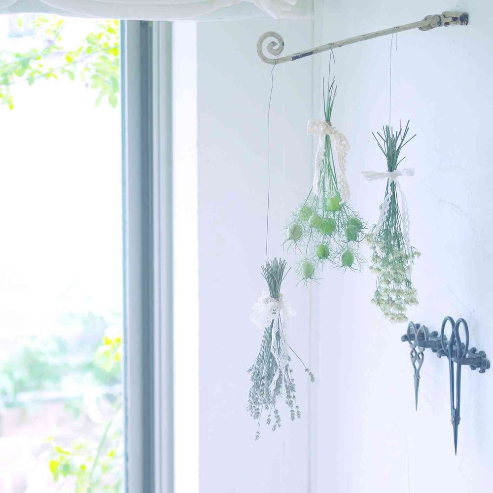 先月庭に咲いていたラベンダー、オルレア、ニゲラの実をドライにしていた過去picです。って、ただぶら下げてるだけで、今は色焼けちゃってるけど。。😁
