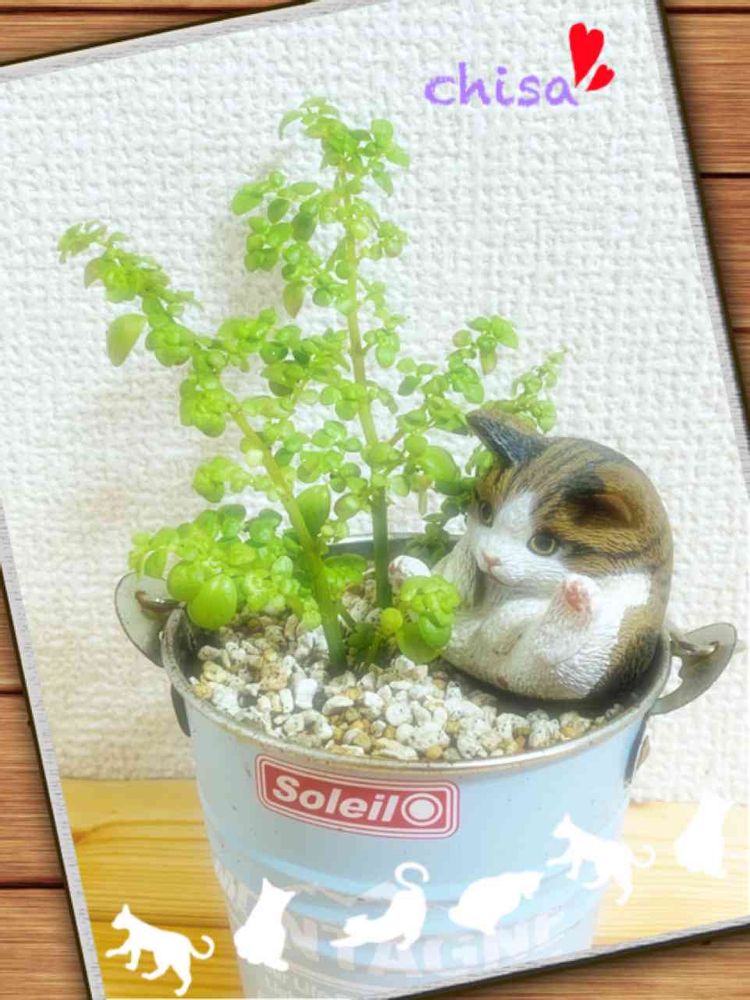 こんばんは🌙まるっとした可愛いねこちゃん😻💕多肉さんもバラバラになったり黒くなったり💦元気な多肉さんも長らく水上げてないのでぺなぺなです😅