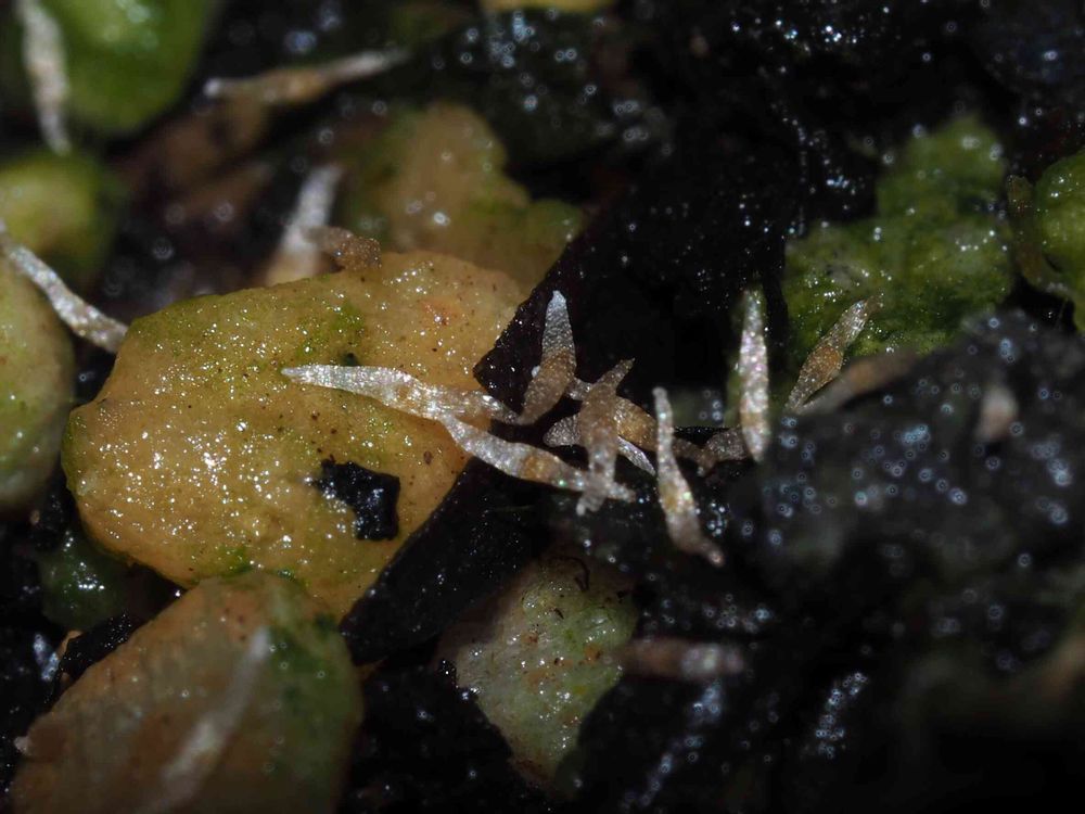 黄花カキランの朔果が裂けて種が飛び出していたので、ダメ元で手当たり次第に色々な鉢に蒔いてみました。