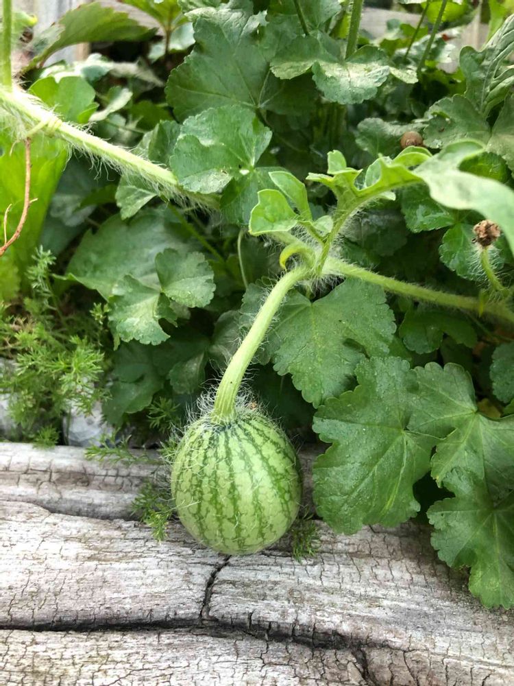 昨年のこぼれ種から。。。。チビっちゃいスイカの実発見✨