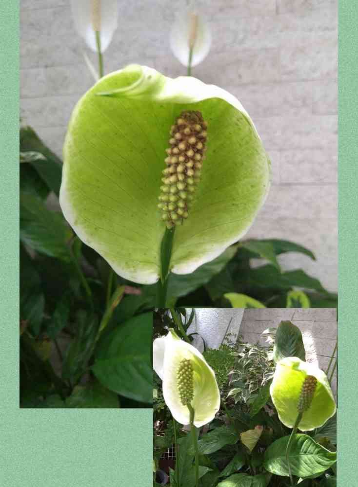 緑色のスパティフィラムの花、涼し気で綺麗です💕
