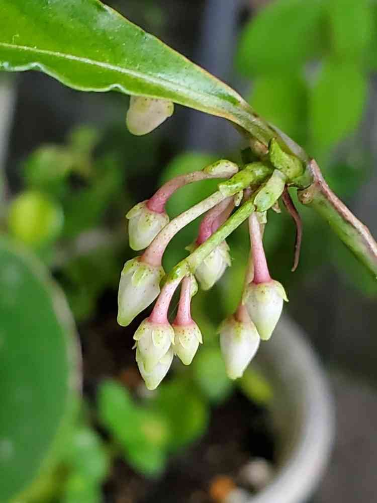 万両とは相性悪く毎年何故か枯らしてしまい、次の年に蕾がつく迄に育ったのは初めてで、嬉しい1枚を撮りました。2ヶ所に蕾がつきました😊
