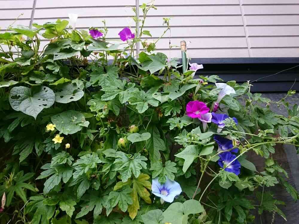 はい、朝顔の沢山咲いてる所をアップしてみました。