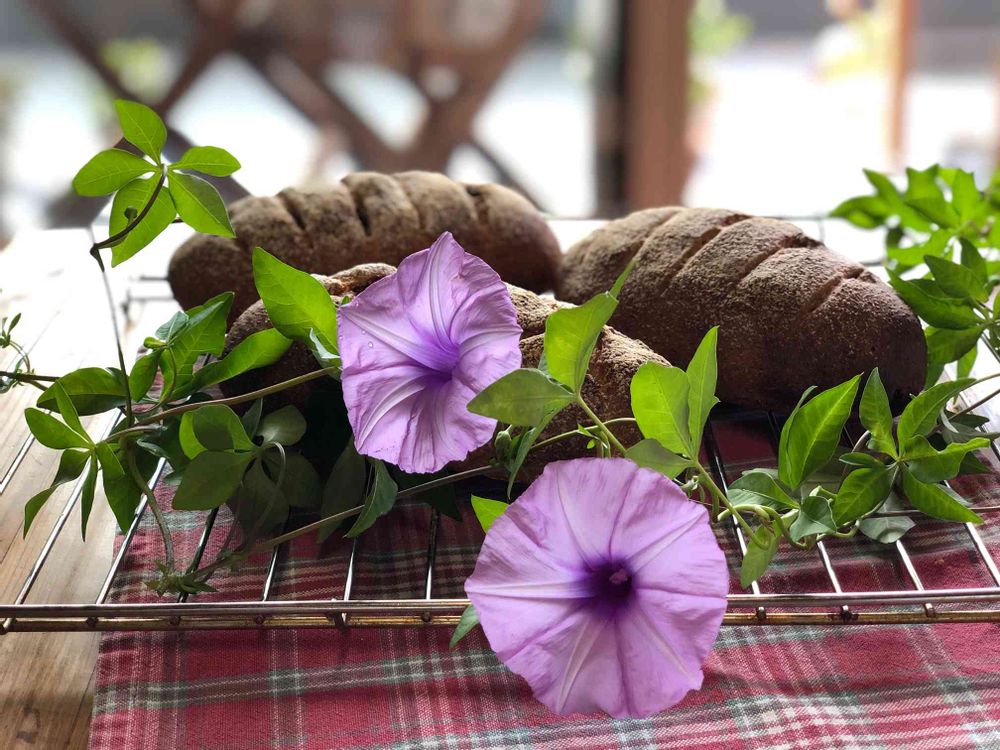 写真が一番に目に入り花の後方に在るのが硬いパン、だとはちょっと気づきませんでした。😅