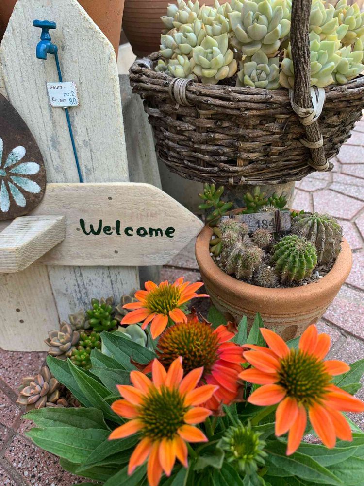 多肉ちゃんにオレンジのエキナセア🧡🧡