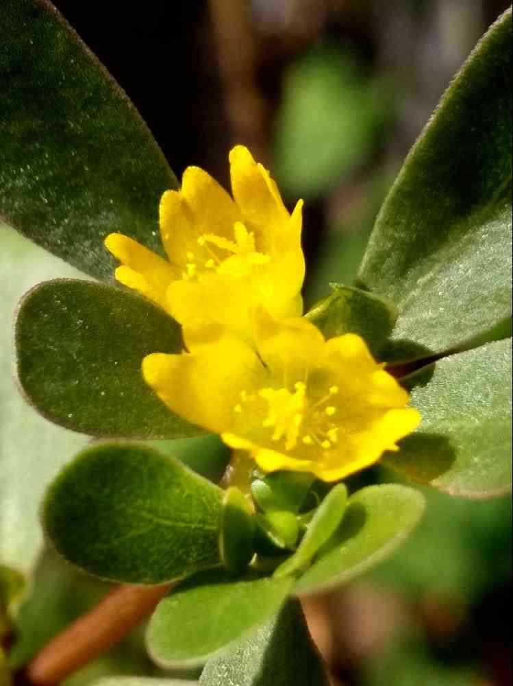 黄色の花弁が5個、先が少し凹む。雌蕊の柱頭は5裂する。茎は赤紫色を帯びる!😨