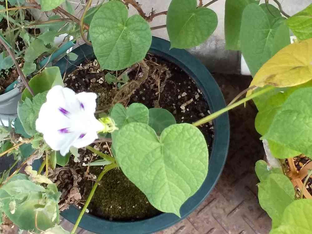 去年貰ったアサガオの種、葉っぱがでだした頃ご近所さんに「種がとれたらちょーだい」 と言われた。貰った種が未だ有ったのでプレゼントした。うちのヒマラヤさんは1輪だけ咲いた。で ご近所さんは沢山咲かさはって♪今年 いっぱい発芽してつるを巻きだしたヒマラヤさんを 鉢ごと下さった♪感謝😌