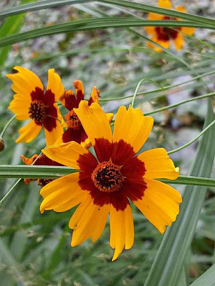 風に揺れるハルシャギク「ハル」は春ではなくペルシャのことだとか。別名)蛇の目ぎく。🐦小鳥は近づかないのかも。