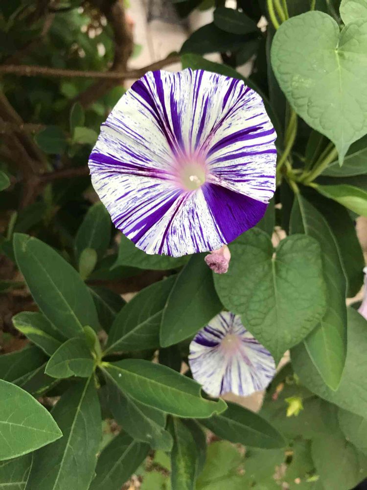 今朝アップした、曜白朝顔の苗をくれた、お隣さんのアサガオです。