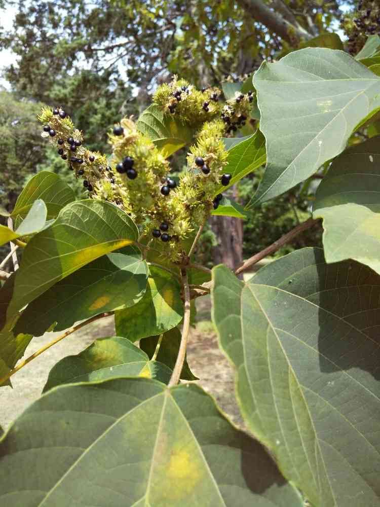 6月に、幼木と散歩で会いましたが、成長すると高木になるんですね! たまに行く公園で、実を沢山着けていました。「アカメガシワの実」です。